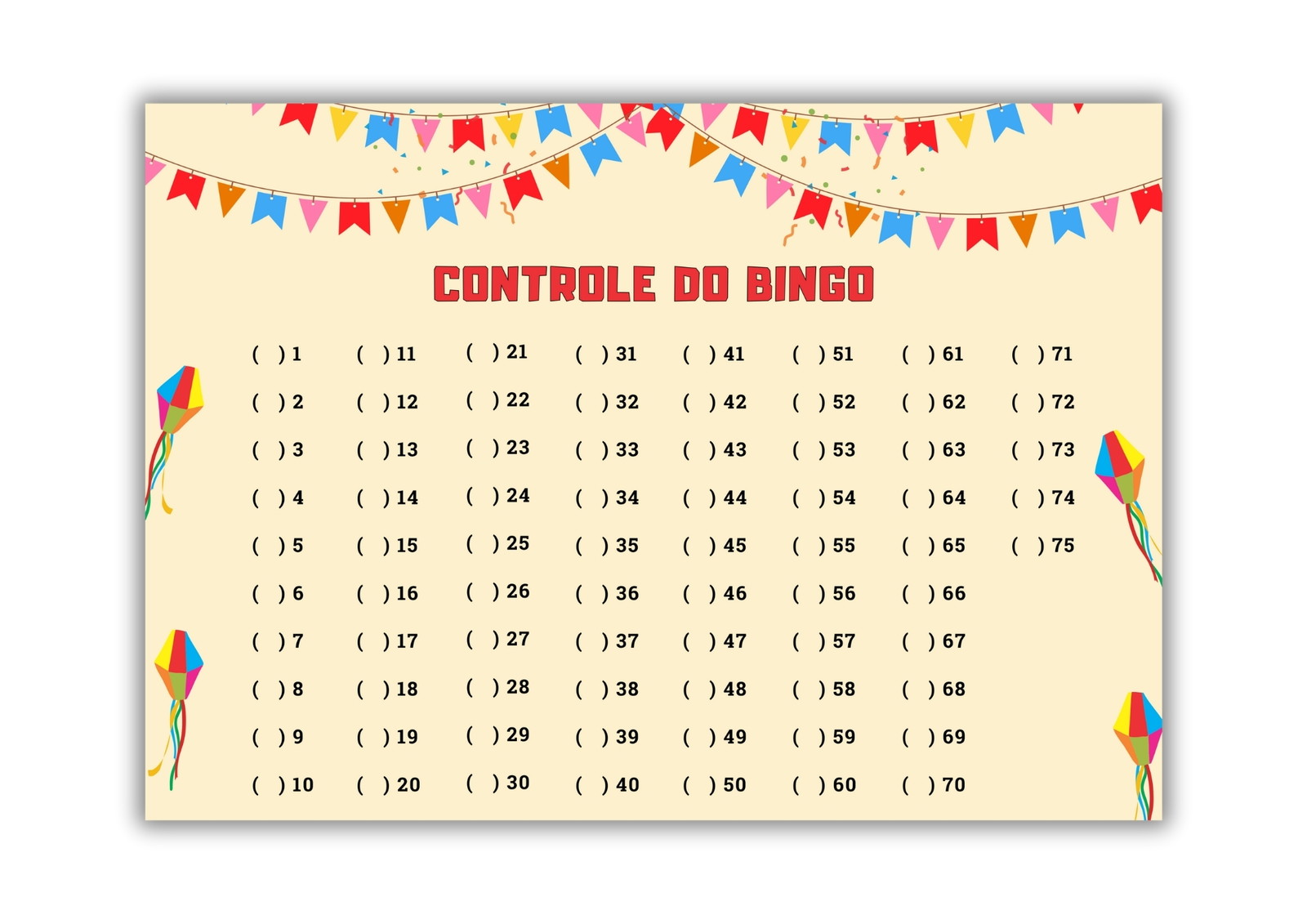 1. Imprima as cartelas, a Folha de Números para Sorteio e a Folha de Controle do bingo.