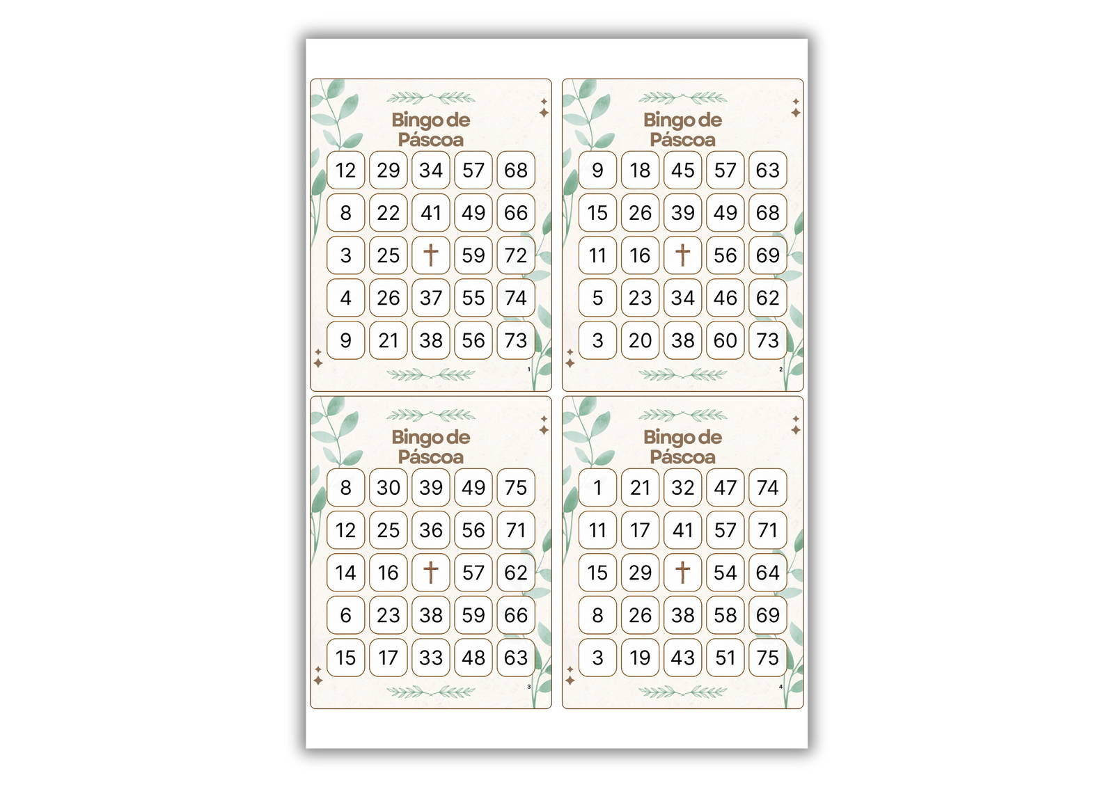 - Cartelas de bingo ( duas opções disponíveis para você escolher: 2 cartelas por página ou 4 cartelas por pagina).