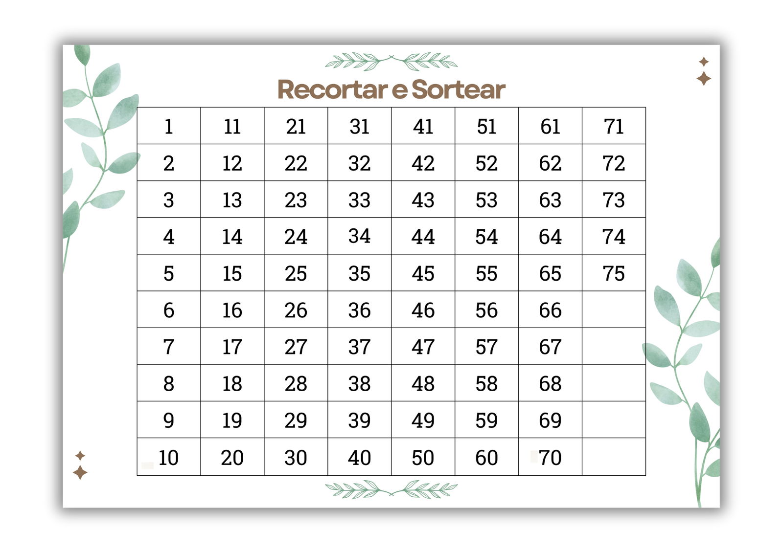 2. Recorte os números da Folha de Números para Sortear e coloque-as em um recipiente.
