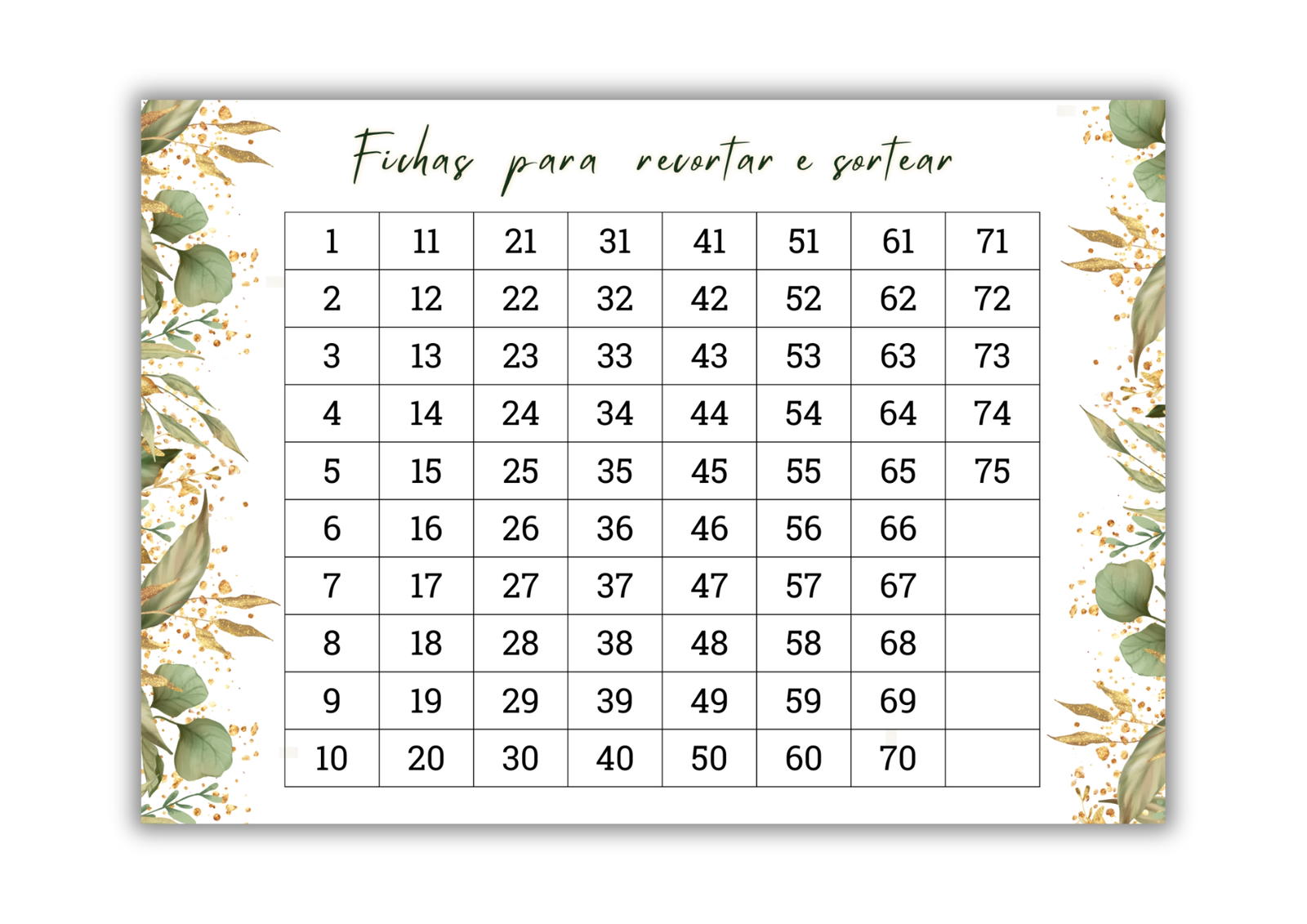- Folha com os números para recortar e sortear + folha de controle para acompanhar o jogo.