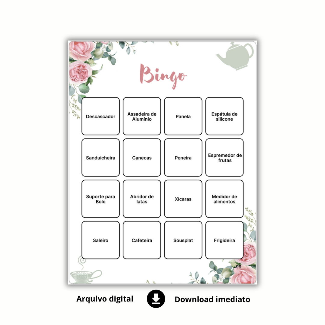 Compre agora esse lindo Bingo de Chá de Panelas e receba imediatamente no seu e-mail!