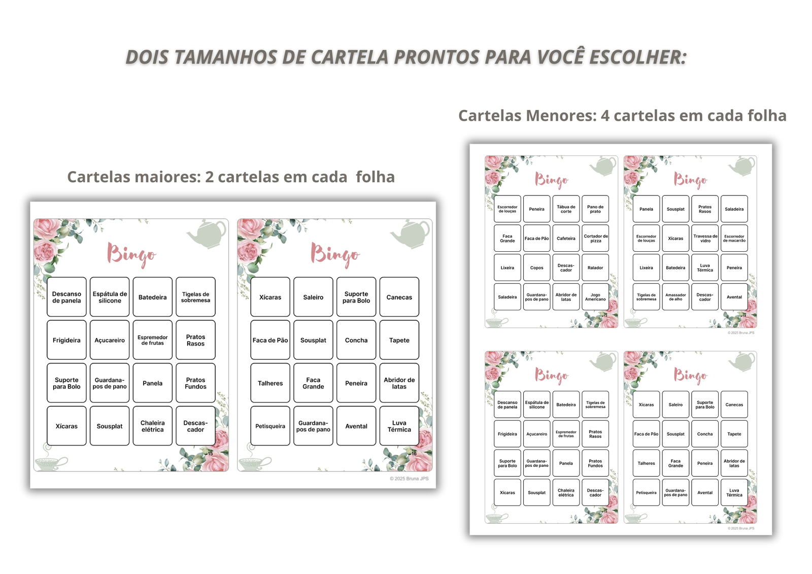 Observação: Não personalizamos as cartelas com nomes ou quaisquer outras edições.