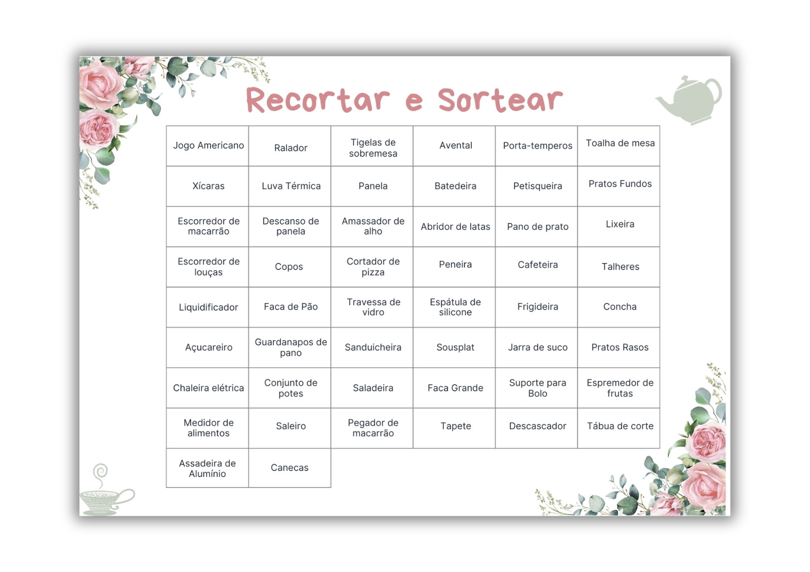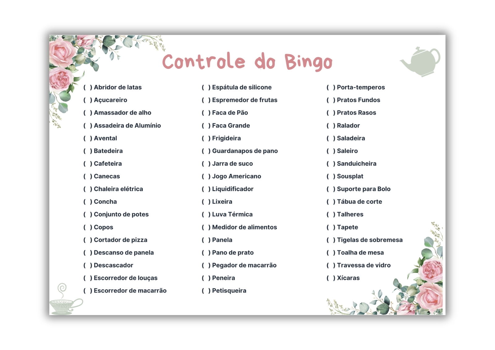 Transforme seu Chá de Panelas em um evento inesquecível com o nosso lindo Bingo de Chá de Panelas!