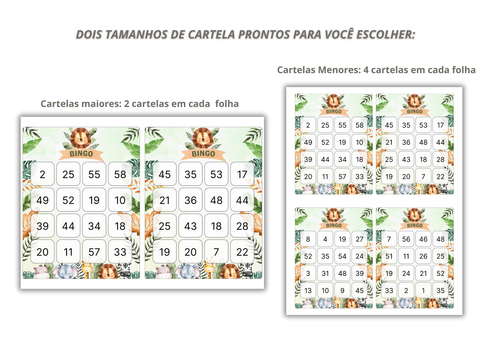 Dúvida frequente: Se você for utilizar menos de 100 cartelas, não há problema em adquirir esse pacote. O jogo funcionará normalmente, mesmo que algumas cartelas não sejam usadas. A única diferença é que pode demorar um pouco mais para sair um ganhador. Você pode distribuir apenas as cartelas que quiser, e o jogo funcionará normalmente.-