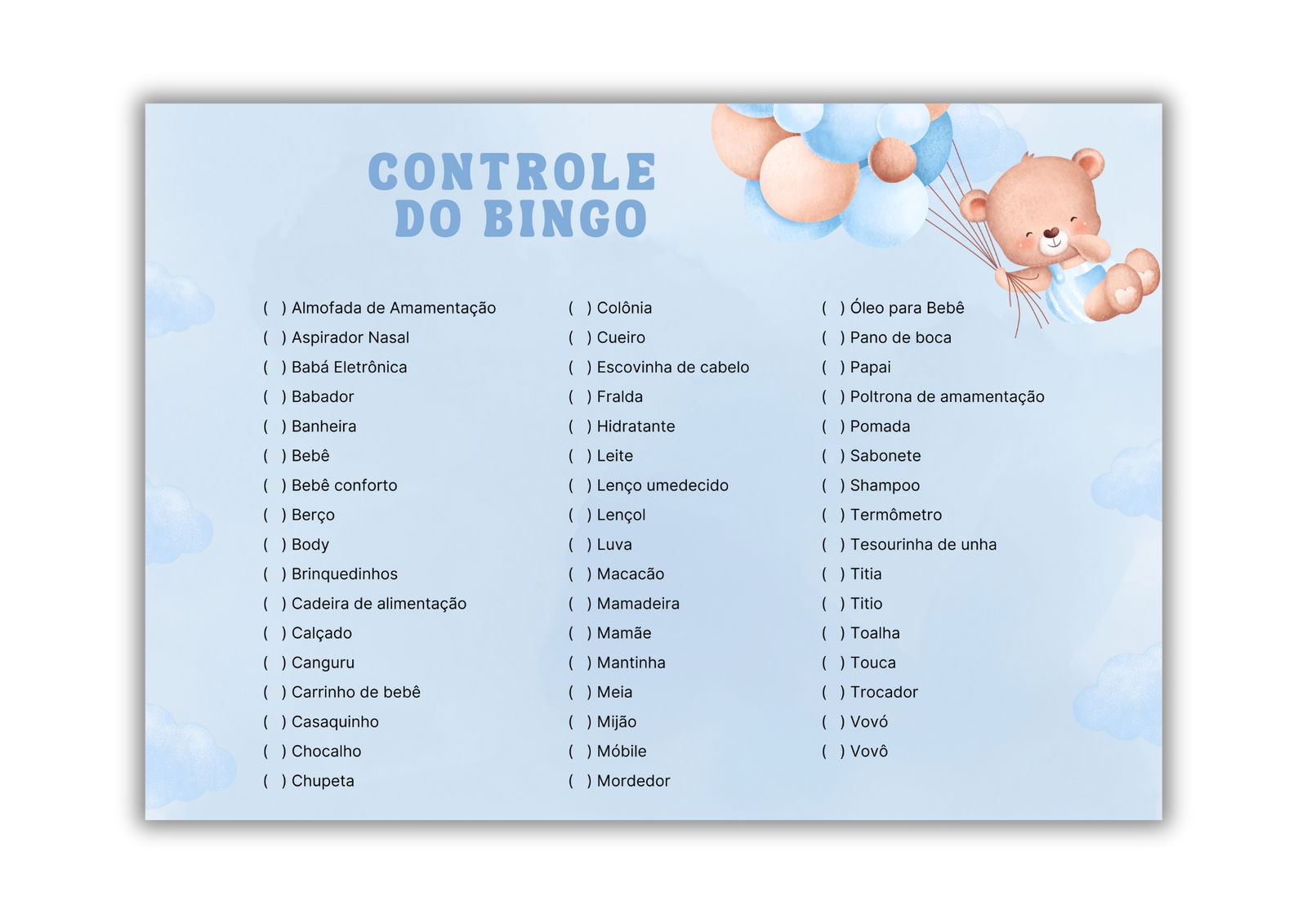 Compre agora esse lindo Bingo de Chá de Bebê e receba imediatamente no seu e-mail!